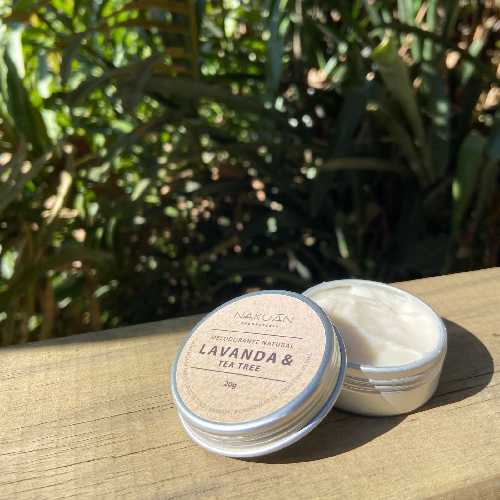 Composição: Manteiga de karité, óleo de coco, bicarbonato de sódio, araruta, óleo essencial de lavanda e óleo essencial de tea tree. Contém: 20g.